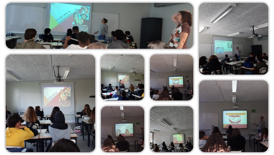 Também foram realizadas sessões de sensibilização aos alunos do 8.º ano, dinamizadas pela Dra. Zita Avó, do ACES Almada Seixal - Pólo Amora, sobre a importância da higiene oral e dos hábitos alimentares saudáveis para se viver bem.