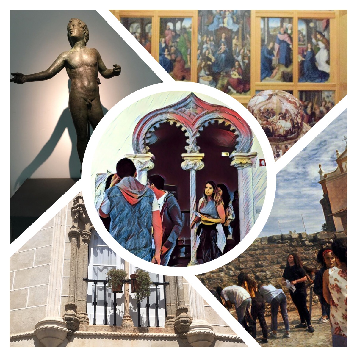 No dia 16 de maio o 10.º C2 de HCA e os 10.º D e E de História A foram a Évora, cujo centro histórico foi classificado pela UNESCO como Património da Humanidade. Após uma íngreme subida alcançou-se o dito Templo de Diana e o Museu. Aí salientou-se como vários povos se sucederam na ocupação do solo eborense, tendo ainda contacto com várias obras de arte, das quais se destacou o Retábulo da Sé de Évora. Andando pelas ruas da cidade observou-se a janela de Garcia de Resende, a fonte no largo das Portas de Moura e a igreja da Graça. Após a pausa para almoço no Jardim Público visitou-se a Sé e a igreja de S. Francisco. Apesar do dia muito quente, em que a frescura das igrejas se revelou um oásis, os alunos mostraram-se sempre muito interessados e entusiasmados!